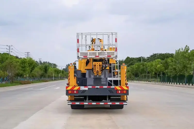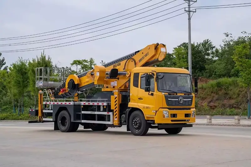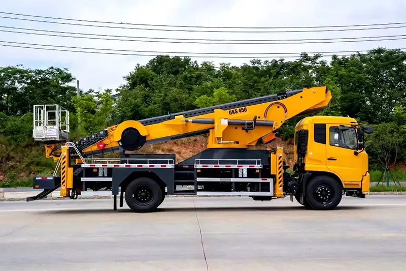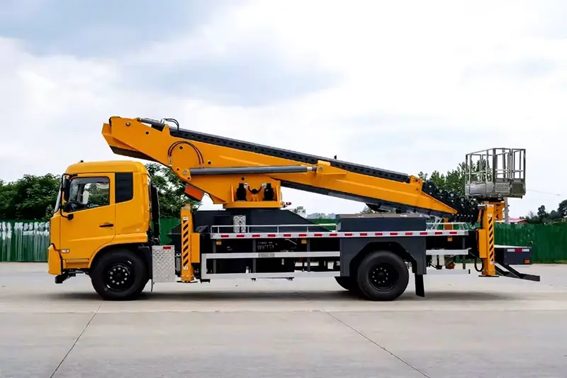 Ответ: В нем используется шасси Dongfeng, отвечающее требованиям Евро-6, с выносными опорами большого пролета X-типа и двойными подъемными цилиндрами, чрезвычайно низким раскачиванием стрелы, устойчивостью и безопасностью даже на максимальной высоте 45 м.