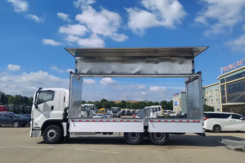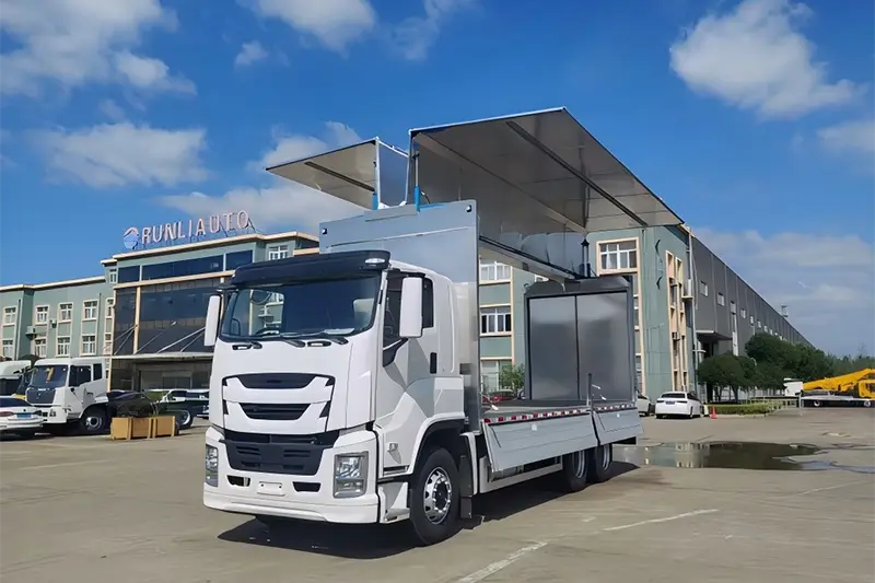 Грузовик Runli из алюминиевого сплава с размахом крыльев, также широко известный как фургон с открывающимся крылом или фургон с боковым развертыванием, представляет собой высокопроизводительный специальный грузовик, модифицированный на базе оригинального шасси Isuzu 6X4, модернизированный для решения проблемы низкой эффективности погрузки-разгрузки для больших, тяжелых и негабаритных грузов. В отличие от традиционных фургонов, открывающихся только назад, его боковые панели грузового отсека и половина крыши гидравлически раскладываются, как крылья, создавая просторную трехмерную погрузочную площадку, которая поддерживает разнонаправленное управление сбоку, спереди и сзади. Это основной логистический транспортный инструмент, широко используемый при распределении сыпучих грузов по всему миру, доставке промышленного оборудования и сельскохозяйственной продукции, идеально сочетающий защиту груза и эффективность обработки для международных оптовых покупателей и специализированных логистических предприятий.