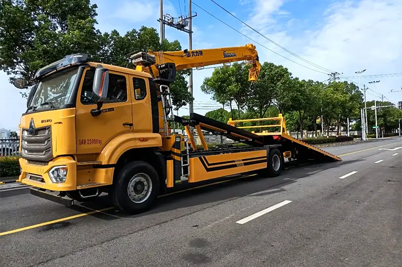 Построенный на шасси National VI Howo 4*2, этот 18-тонный эвакуатор оснащен 10-тонной платформой, 8-тонным телескопическим буксировочным рычагом, 8-тонным краном XCMG с прямой стрелой и двусторонним управлением, идеально подходящим для дорожно-спасательных работ, перевалки неисправных транспортных средств и подъема тяжелых грузов. Мы поддерживаем индивидуальные конфигурации, 12-месячную гарантию качества и удаленное техническое руководство по видеосвязи, принимаем только торговые условия FOB и EXW, обслуживая глобальные спасательные команды и логистические компании с помощью прочных и высокоэффективных грузовиков One Drag Two Wrecker Trucks.